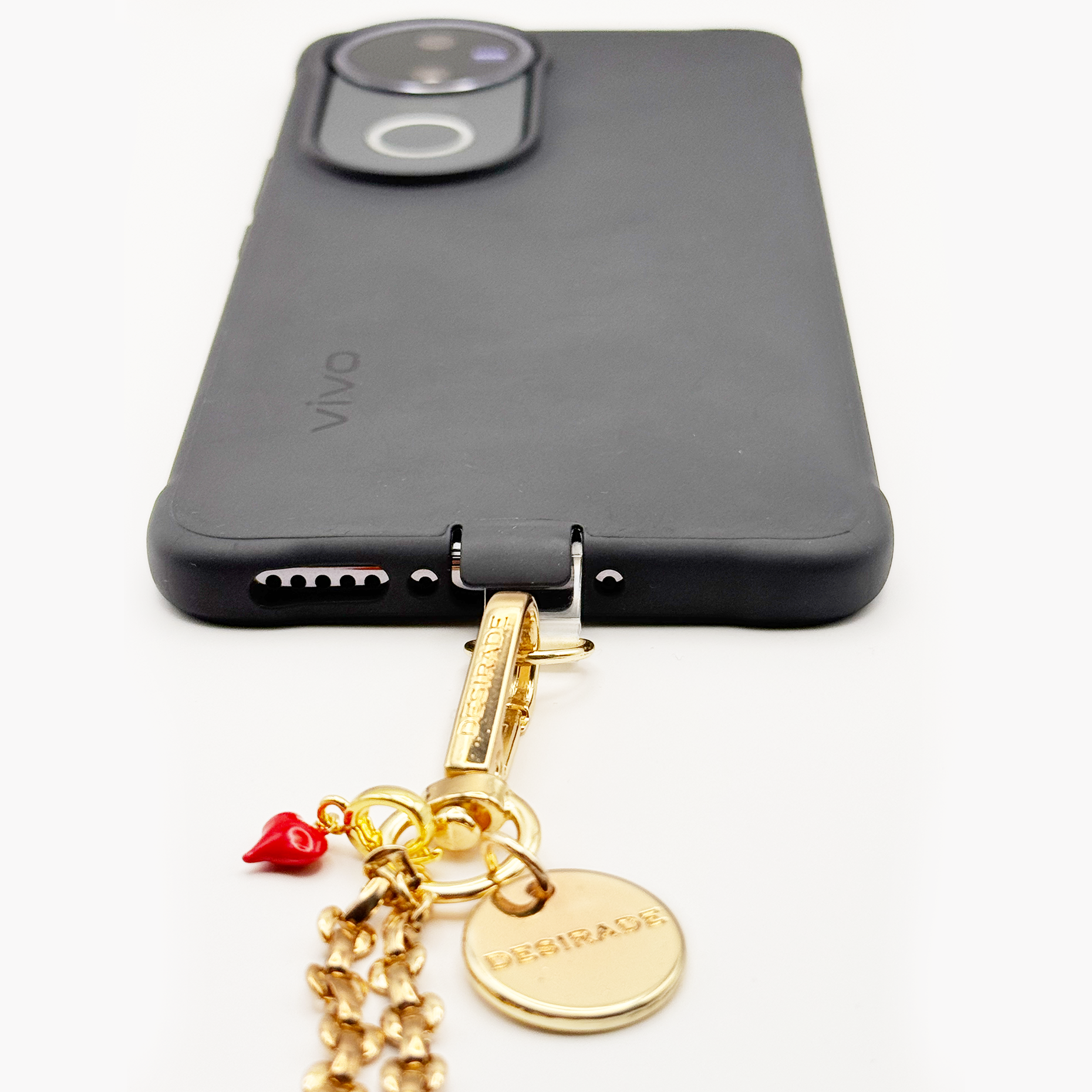 Toate lanțurile și brățările Desirade sunt create pentru versatilitate și rafinament. Le poți prinde de husă sau de poșetă și le porți ca accent de stil – statement, funcțional, mereu în ton cu tine.