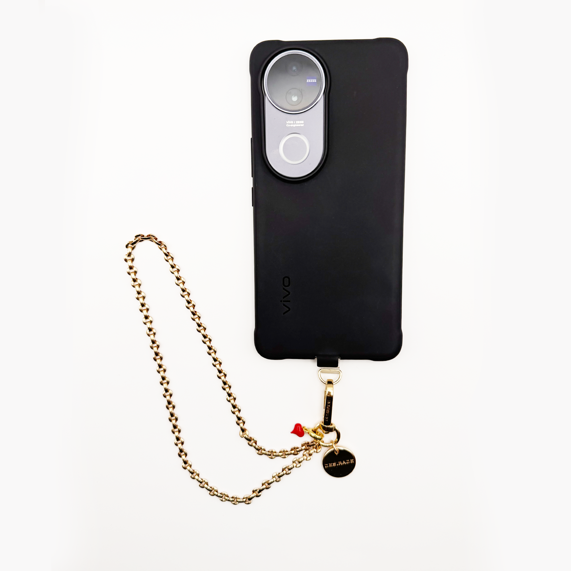Heart Charm Chain este lanțul care adaugă o notă de emoție și atitudine fiecărui telefon. Piesa centrală – inimioara roșie, suflată cu aur 18K – este un detaliu plin de caracter, simbol al stilului autentic și al momentelor trăite cu pasiune.