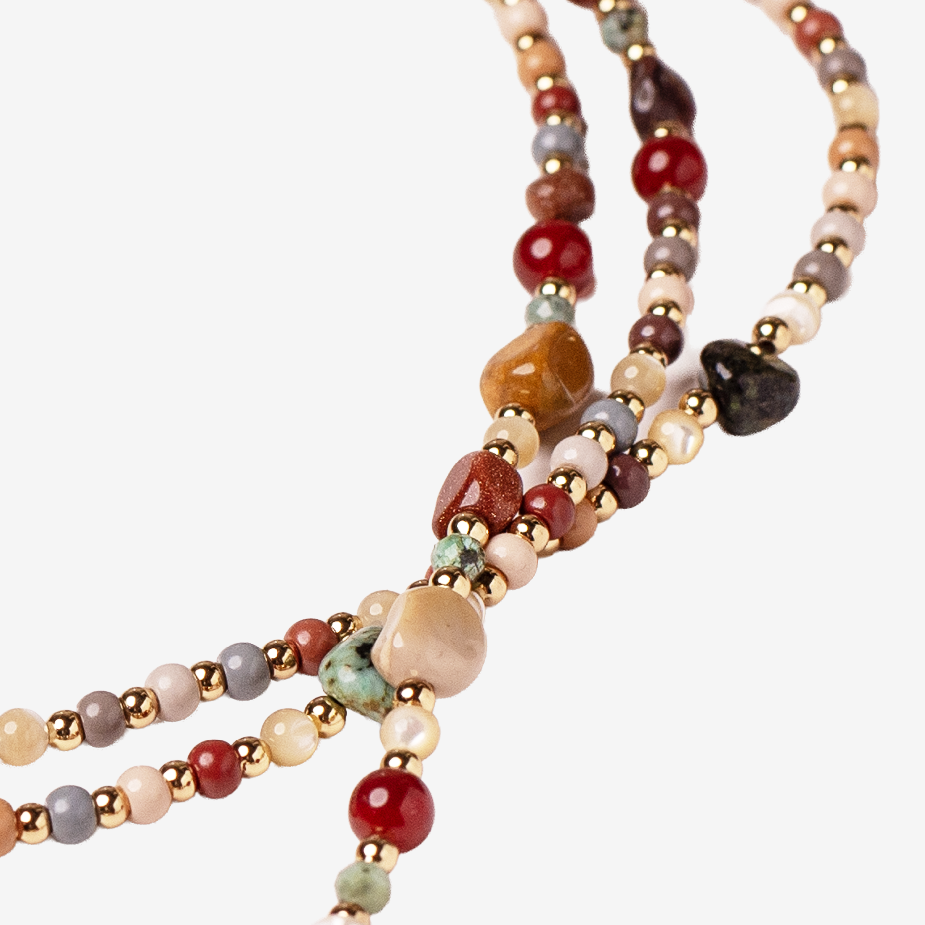 • mix de pietre naturale: goldstone, turcoaz african, scoică, pietre pământii, agat roșu